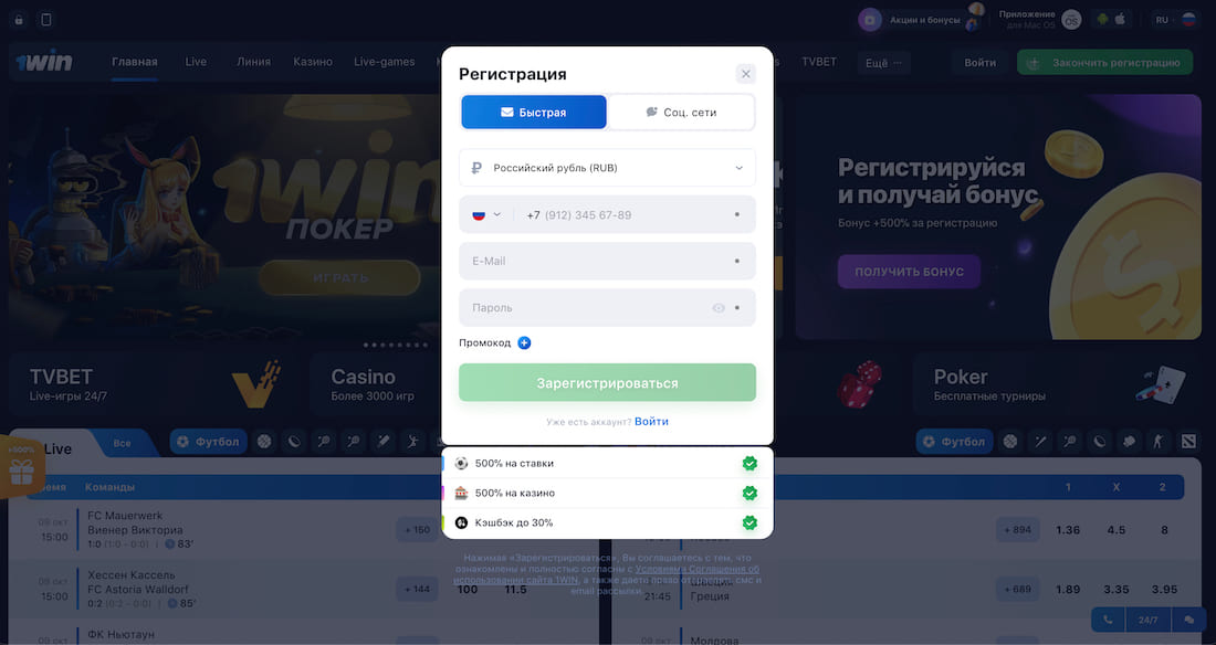 Только зарегистрированные пользователи могут делать ставки и пользоваться бонусами. Для создания аккаунта: