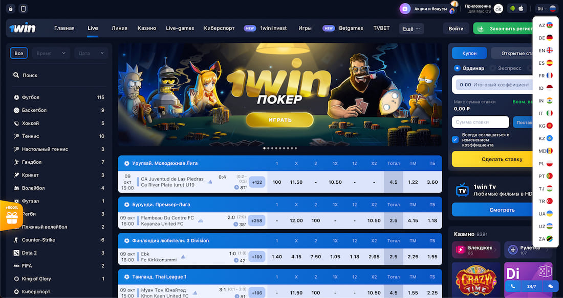 1вин – это букмекерская контора с обширной линией спортивных событий и разнообразными видами ставок. Здесь каждый найдет подходящий вариант, ведь оператор предлагает: